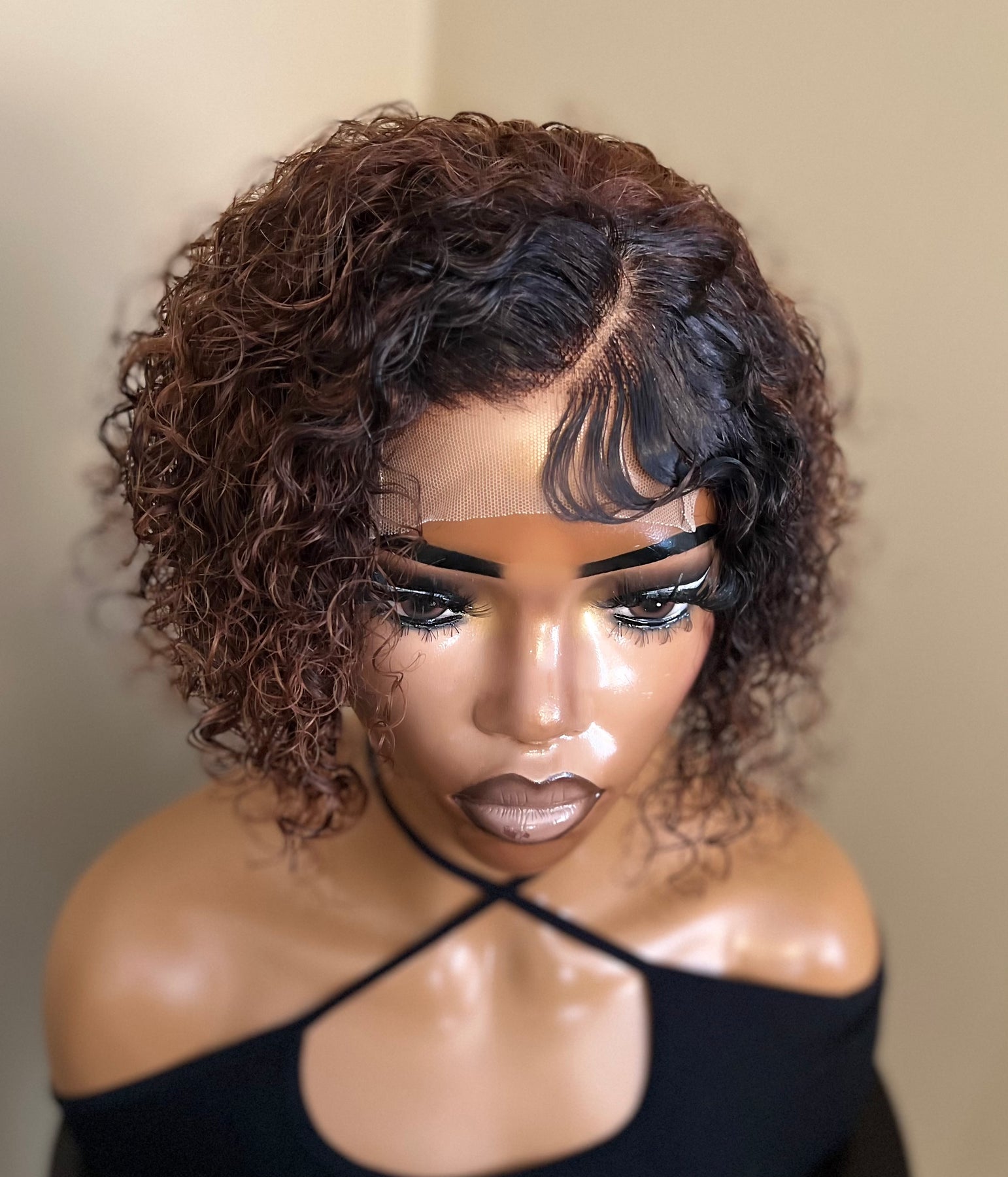 Sasha is back in stock y'all!!!! Transparent lace, 4x4 parting space, can be worn completely glue-less. This curly pixie wig is 8-10" in length, she has been custom colored and has adjustable straps and bans on the inside for a snug secure fit.